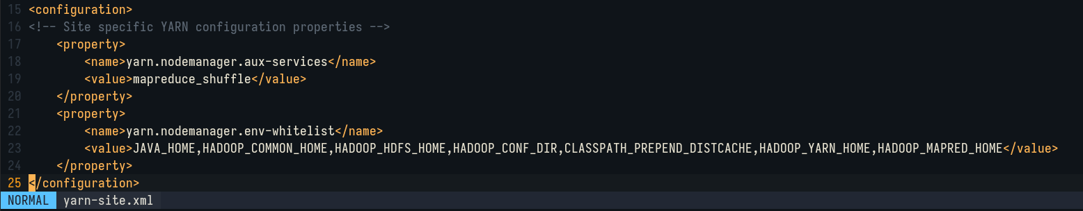 <value>JAVA_HOME,HADOOP_COMMON_HOME,HADOOP_HDFS_HOME,HADOOP_CONF_DIR,CLASSPATH_PREPEND_DISTCACHE,HADOOP_YARN_HOME,HADOOP_MAPRED_HOME</value>