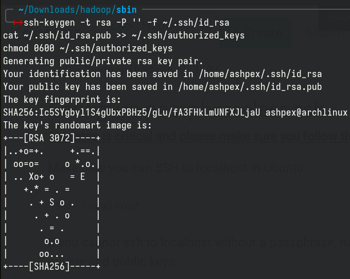 ssh-keygen -t rsa -P '' -f ~/.ssh/id_rsa
