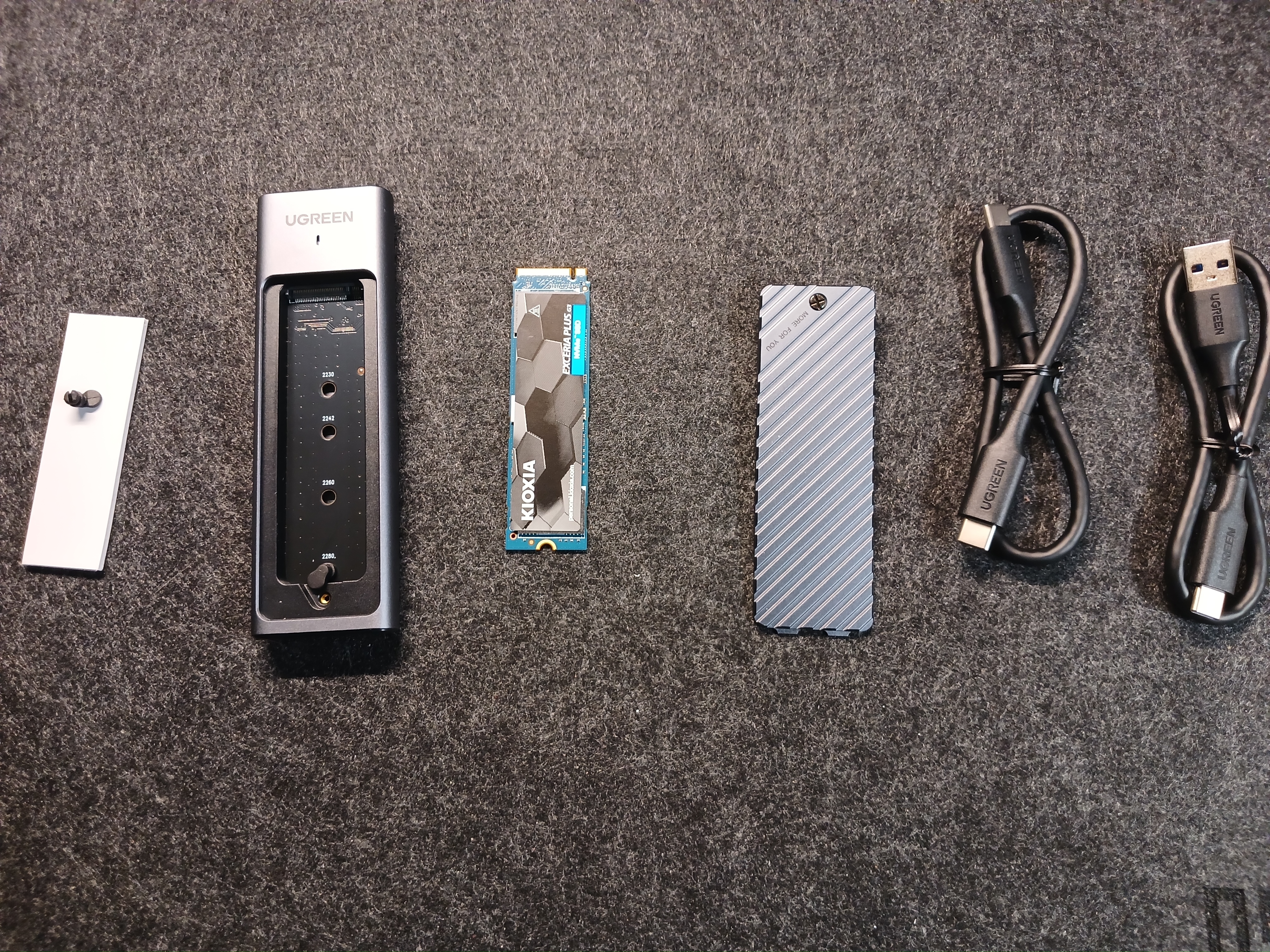 Storage: 1TB SSD (Ugreen SSD enclosure with 1TB Kioxia NVMe SSD)