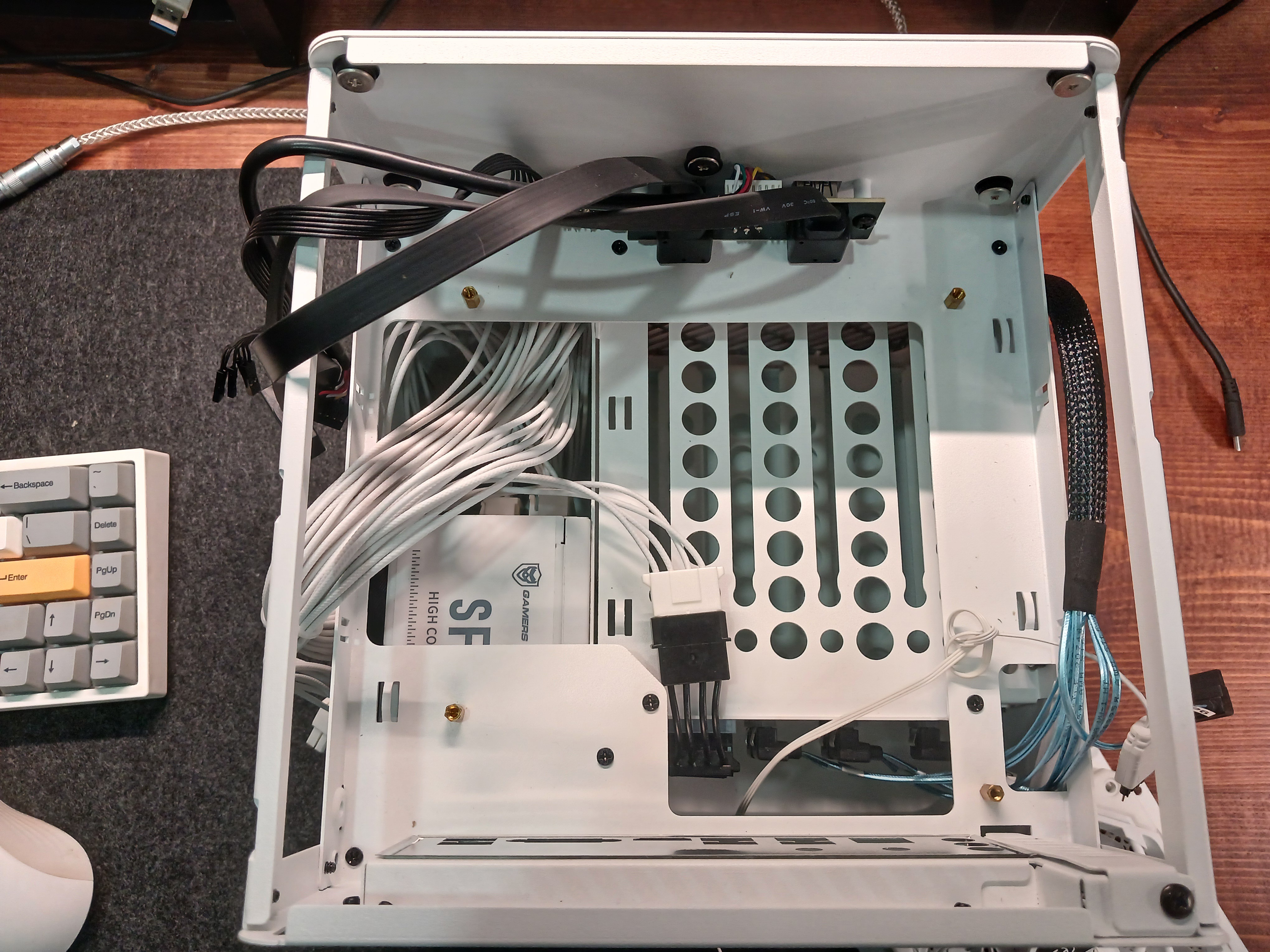 Nothing fancy here, just a 750W SFX PSU. I got it for a steal, and it’s more than enough to power the system. Plus, it’s modular, so I can keep the cables tidy and the airflow unobstructed. Also got myself a PSU tester to make sure it’s working properly before plugging it in.